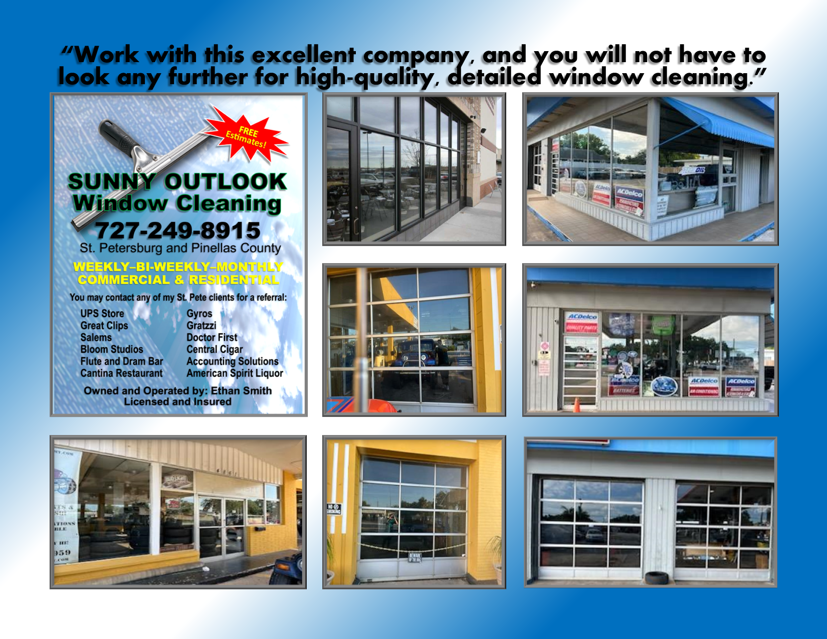 My name is Ethan Smith, owner and operator of SUNNY OUTLOOK Window Cleaning.